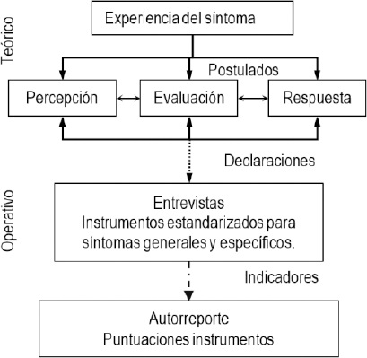 El primer constructo, la experiencia de los síntomas, se desglosa en tres conceptos fundamentales: percepción de los síntomas, evaluación de su significado y respuesta a los mismos. Estos aspectos abordan una amplia gama de dimensiones, incluyendo aspectos fisiológicos, psicológicos, socioculturales y comportamentales.12,16 Además, el modelo actualizado introduce el concepto “clúster de síntomas”, en el cual síntomas concurrentes comparten una posible causa subyacente común, lo que influye en su resolución.12