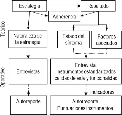 La STM también incorpora el concepto de Adherencia, que media la relación entre las estrategias y los resultados, y se refiere a la recepción o utilización de las estrategias prescritas.12,16 Este concepto es crítico y está bajo el control del paciente o su familia, pero puede también verse afectado por las características del sistema de atención y del proveedor de servicios de salud.12,16,19