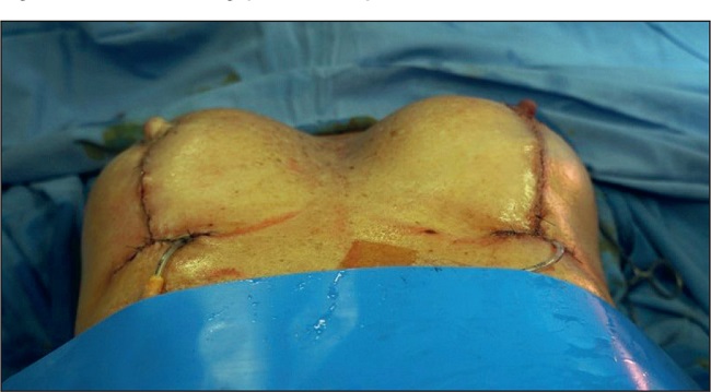 Figura 3. Fin de la cirugía de mastopexia con retirada definitiva de implantes y mastopexia con colgajo vertical bipediculado.