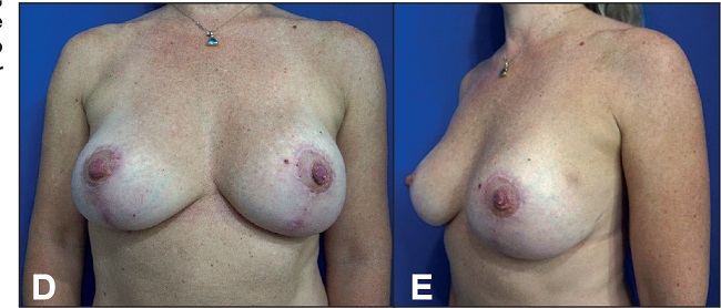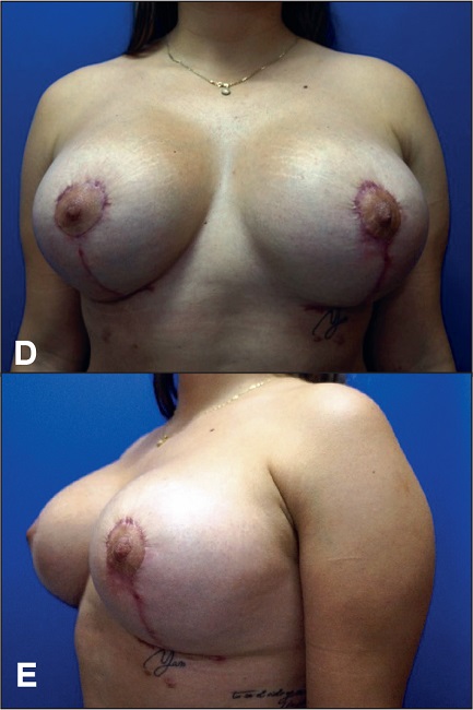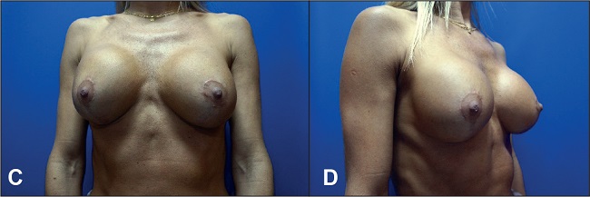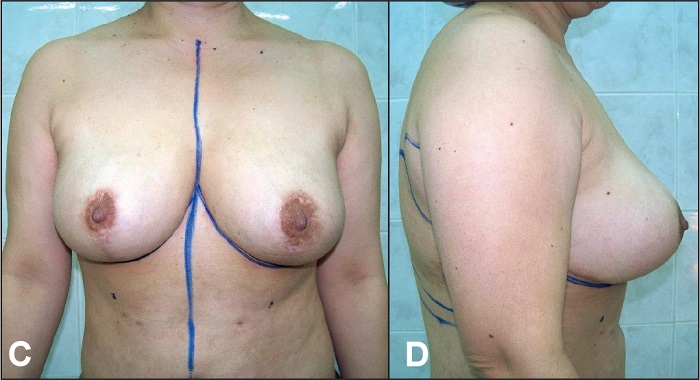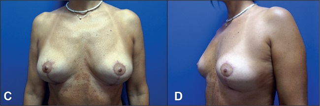 Fig. 8 C y D. Postoperatorio a los 6 meses: retirada de implantes y mastopexia con colgajo vertical bipediculado.