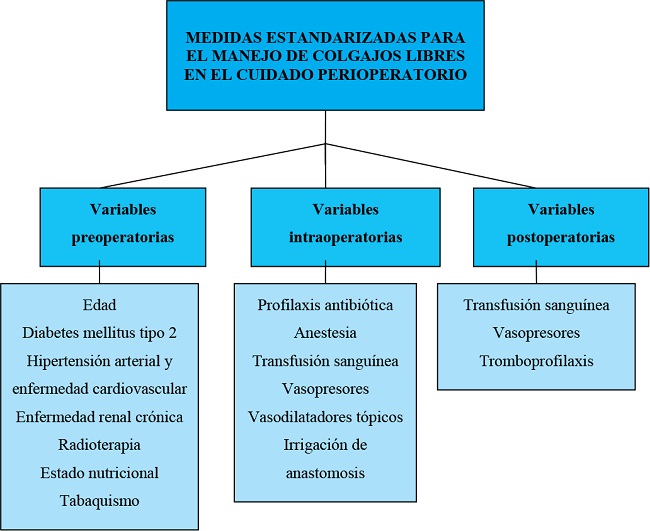 Con el transcurso de los años, el uso de colgajos libres microquirúrgicos se ha convertido en una técnica fundamental de la Cirugía Plástica Reconstructiva. Dado que se trata de un procedimiento de alta exigencia, tanto en conocimiento como en destreza, existen diversos estudios que presentan múltiples protocolos de manejo perioperatorio con el fin de mitigar la tasa de complicaciones y desenlaces desfavorables para los pacientes. Sin embargo, la evidencia en nuestro medio es escasa.