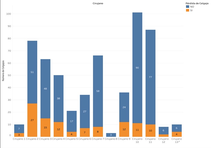 Debido al diseño del estudio que presentamos, no podemos establecer una relación causal entre las diferentes variables y la pérdida de los CL, ya que analizamos los datos de forma retrospectiva. Otra limitación de nuestro estudio es el sesgo de observación, debido a que los datos fueron recopilados únicamente por el autor principal. El porcentaje de éxito entre cada cirujano puede variar y no reflejar exactamente su efectividad debido a la realización de cirugías en conjunto con otros cirujanos.
