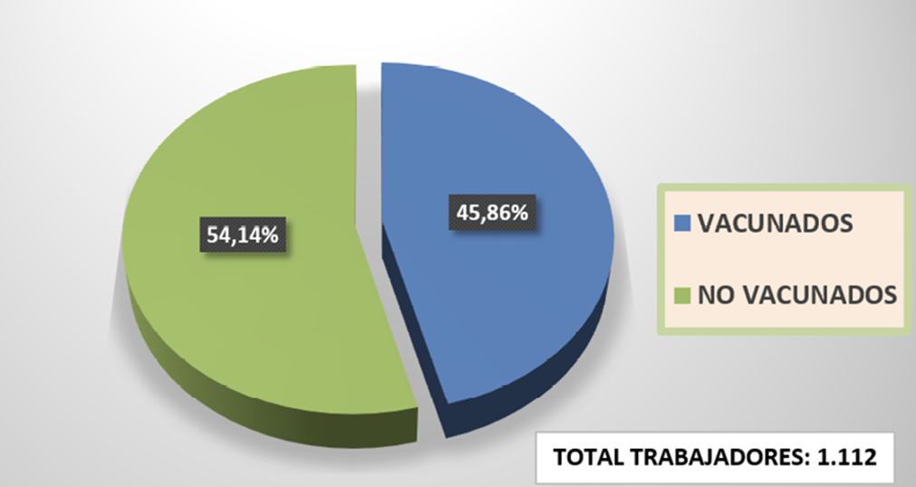 Y con respecto a los trabajadores vacunados de la Gripe, únicamente se ha hecho uso de los registros que se han realizado por el Servicio de Prevención de Riesgos Laborales, quedando excluido aquel personal sanitario que haya sido vacunado en otro centro.