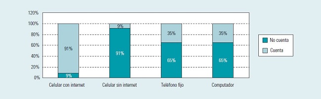 En cuanto al comportamiento de la muestra asociado a las variables de socialización, es posible evidenciar en la tabla 2 que el 82,6% de las personas mayores vivía con al menos una persona y un 17,4% vivía sola. El 60,9% de la muestra socializaba todos los días con otras personas, y ninguno de los participantes indicó no socializar en la semana con otra persona. Todos contaban con acceso a recursos económicos a través de pensión. El 100% de los participantes disponían de algún medio tecnológico para comunicarse, entre los que destaca el celular con o sin internet, el teléfono fijo y el computador. El detalle se muestra en la figura 1, donde el 100% de los participantes contaba con celular para comunicarse y de estos, el 91% contaba con internet en el celular, así también el 35% tenía un teléfono fijo y un 35% poseía computador.