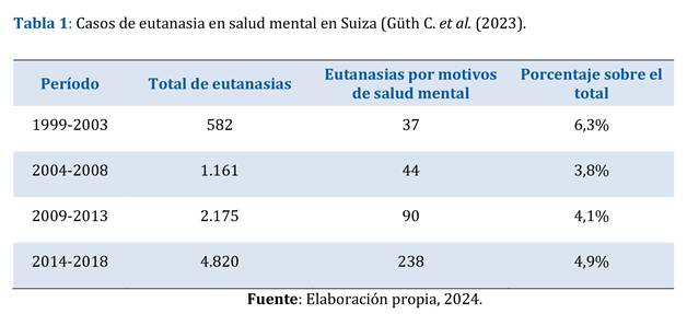 Sin pretender ser exhaustivos y revisar así todos los países que han legislado la eutanasia, queremos poner como ejemplos a Suiza, Países Bajos y Bélgica por su amplia experiencia en el ámbito. Güth C. et al. (2023) analizan los casos en Suiza asociados con demencias, trastornos mentales y polimorbilidad, con el objetivo de evaluar si ha habido un aumento de la incidencia. Para ello, clasifican los casos en tres categorías y las examinan a lo largo de un periodo de 20 años (1999-2018), durante el cual se registraron 8738 eutanasias.
