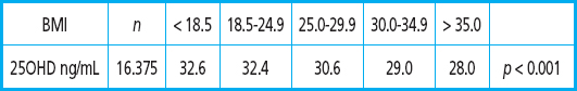 Vitamin D and uterine fibroids, more commonly called leiomyomas, or fibromas. This year (14) Okoro that 75 women with uterine leiomyoma had 25OHD levels of 15.26 ± 4.96 ng/mL while the 75 controls had 25OHD levels of 22.45 ± 6.93 ng/mL (p < 0.001). Additionally, there was a negative correlation between fibroid volume and 25OH Vit D (p < 0.001). In 2013 reports came on the negative correlation between 25OHD and fibroid weight (15) and, in 1997, on the fact that black women had less vitamin D and greater fibroid masses (16).