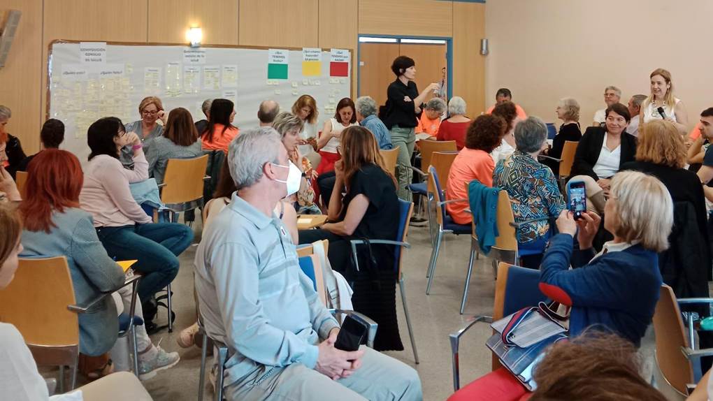 Se llevó a cabo una jornada participativa (figura 1) en la que intervinieron 15 CSZB, a cuyos integrantes convocó la dirección de AP. Inicialmente se identificó a todas las personas participantes y se organizaron en grupos de discusión heterogéneos (figura 2), que estaban compuestos por personas de diferentes CSZB (representantes de la ciudadanía, del equipo municipal, y de la zona básica (enfermería, medicina, trabajo social y coordinación médica), con el objetivo de favorecer relaciones entre las zonas básicas (ZB) y fomentar el aprendizaje mutuo.