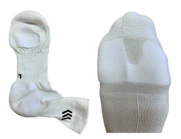 Grupo experimental de 16 participantes, que llevó calcetines de descarga metatarsal Podoks®. Estos están fabricados en Coolmax Eco® (50 % poliéster, 35 % poliamida y 15 % elastano) y contiene un elemento biomecánico, en forma de descarga en U en segunda y tercera cabezas metatarsales (Figura 1).