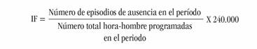 Índice de frecuencia IF: proporción de episodios de ausencia por cada 100 trabajadores programados de tiempo completo durante el periodo
