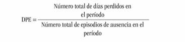 Duración promedio de días perdidos por persona ausente DPD: