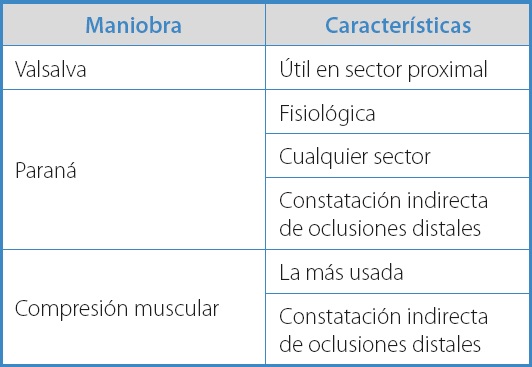 La tabla VI resume las maniobras de estudio del reflujo venoso.
