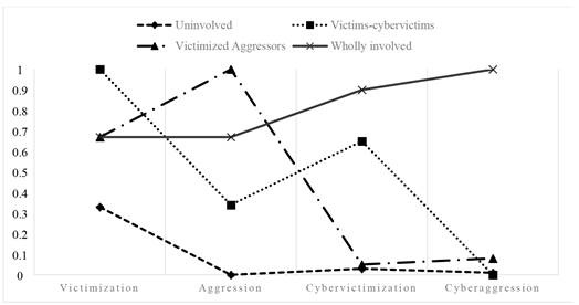 Figure 1. Latent class profiles of participation in bullying and cyberbullying.