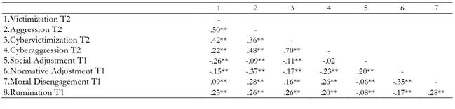 Keywords: Victimization; Cybervictimization; Aggression; Cyberaggression; Moral Disengagement; Anger Rumination; Social and Normative Adjustment