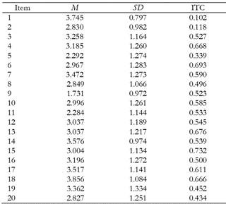 Spanish-Clance Impostor Phenomenon Scale (S-CIPS). This scale is a translated version of the original Clance Impostor Phenomenon Scale (CIPS), which comprises 20 items that use a Likert rating scale ranging from 1 (never) to 5 (always). The S-CIPS was translated from English into Spanish with the permission of the original authors using the back-translation method described by Hambleton (2005) as follows: first, a bilingual person translated the original version into Spanish. Then, another bilingual person, unfamiliar with the original scale, translated it back to the original language. Afterwards, the original and the back-translated versions were compared, correcting the discordances in the translated version. Finally, the authors assessed the obtained test and prepared it similarly to the original version. The instrument can be found at https://osf.io/yuwqx/