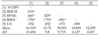 Correlation coefficients, as well as the means and standard deviations of each of the scales, are shown in table 2. In line with previous studies (Brauer & Wolf, 2016), our instrument showed moderate to strong correlation with measures of depression, self-esteem and fear of negative evaluations. These results suggest both nomological and discriminant validity of the S-CIPS. However, Impostor Syndrome scores did not show to be correlated neither with external nor internal locus of control (r = .032).