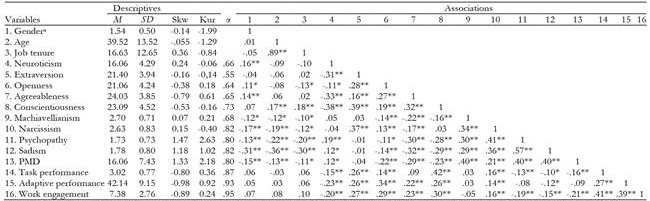 Keywords: Propensity to moral disengagement; Big Five; Dark Tetrad; Job performance; Work engagement