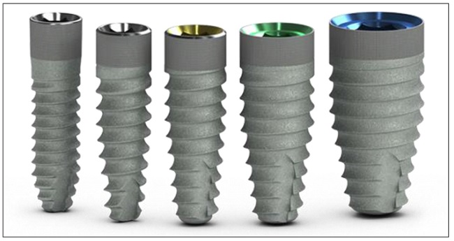 Los implantes bone level escogidos fueron los implantes Tapered Internal de Biohorizons®(Madrid, España) que presentan un cuerpo anatómico cónico y rosca trapezoidal. La conexión cónica de hexágono interno de 1,5 mm de profundidad con bisel cónico. El cuerpo RBT y tratamiento de superficie es mediante un cuello Laser-Lok (Figura 1).