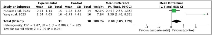 La diferencia en la reducción de ancho de la cresta ósea en pacientes en los que se realizó PCA con DA demostró ser menor que en crestas que curaron espontáneamente, con diferencias estadísticamente significativas. (Diferencia de Medias Ponderada (DMP): 0,88, IC 95%: 0,05 a 1,70, p=0,04 y heterogeneidad I2: 90%, p=0,002) (Fig. 3).