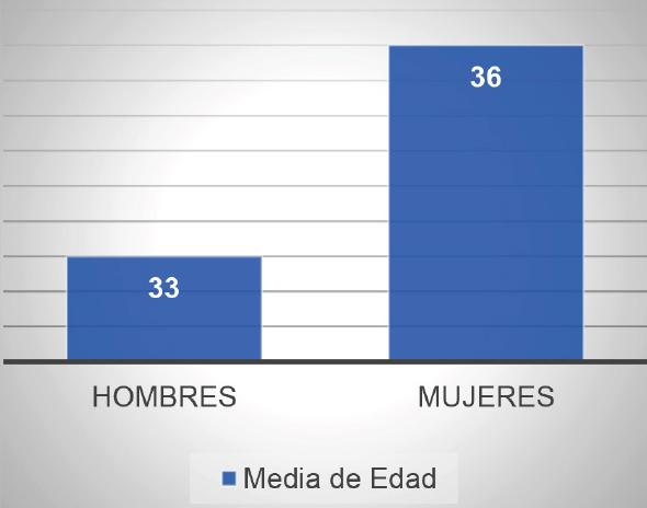 En este estudio participaron 52 pacientes de 18 a 40 años de edad. La edad media de hombres y mujeres fue de 30 ± 6.5 años respectivamente. Siendo 67% de las participantes mujeres y 33% hombres. (Tabla 2)