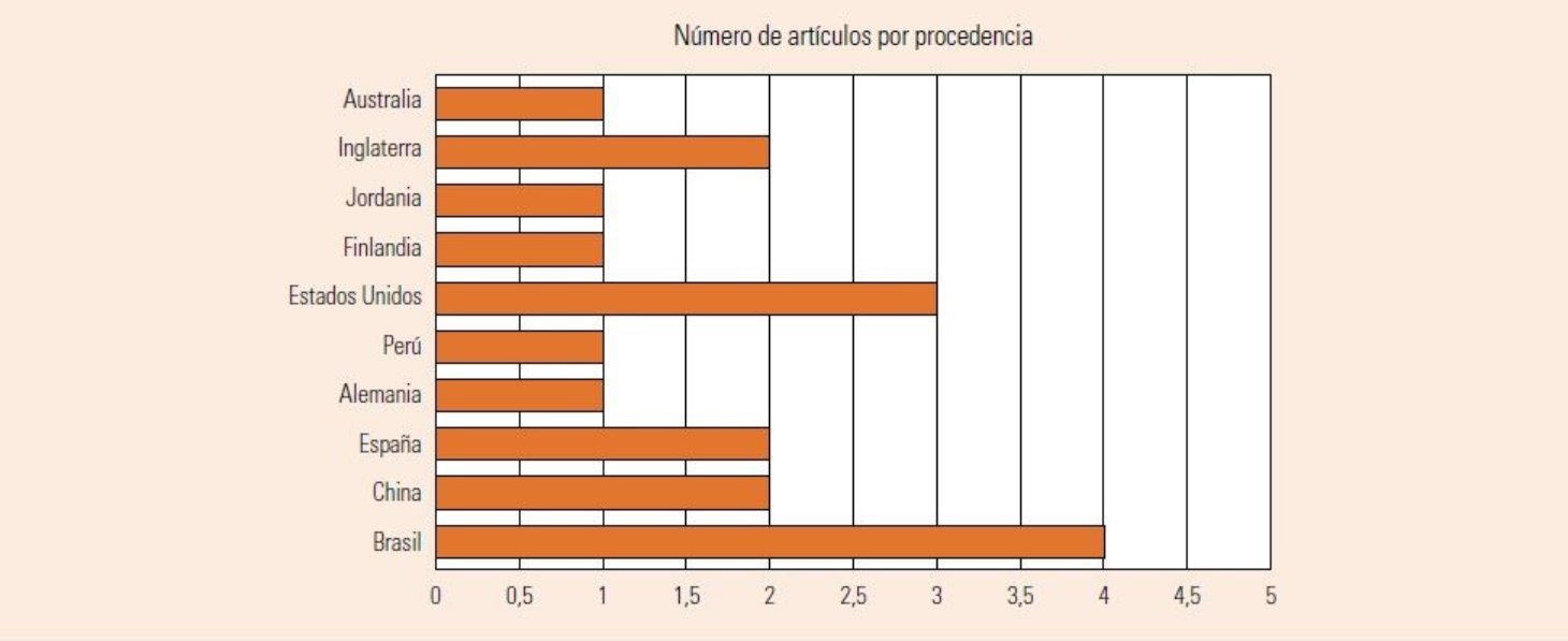 Como se puede observar en la citada figura, 4 de los estudios seleccionados son de Brasil. Esto se podría deber a que, en ese país, el programa de doctorado en enfermería incluye la necesidad de publicación de los resultados de las tesis doctorales, lo que se traduce en elevada producción y publicación sobre investigación en cuidados de enfermería, pues cuenta con una población de aproximadamente 214 millones de habitantes.