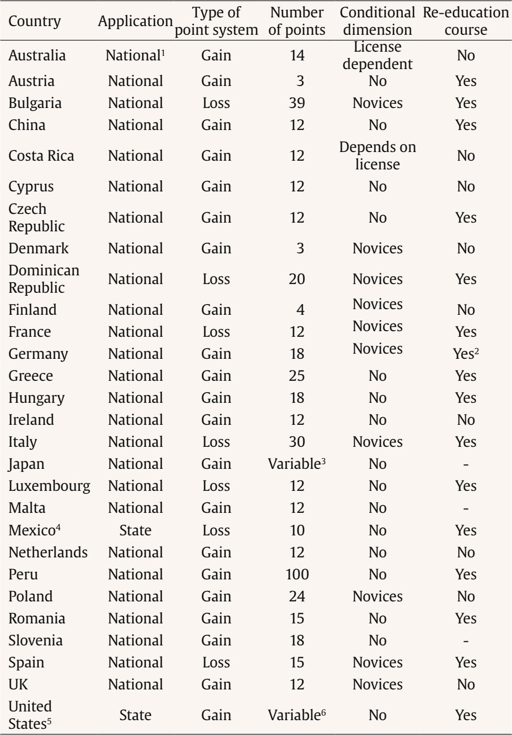 Diferences in the Application of the Driver's License Point-based System by Country