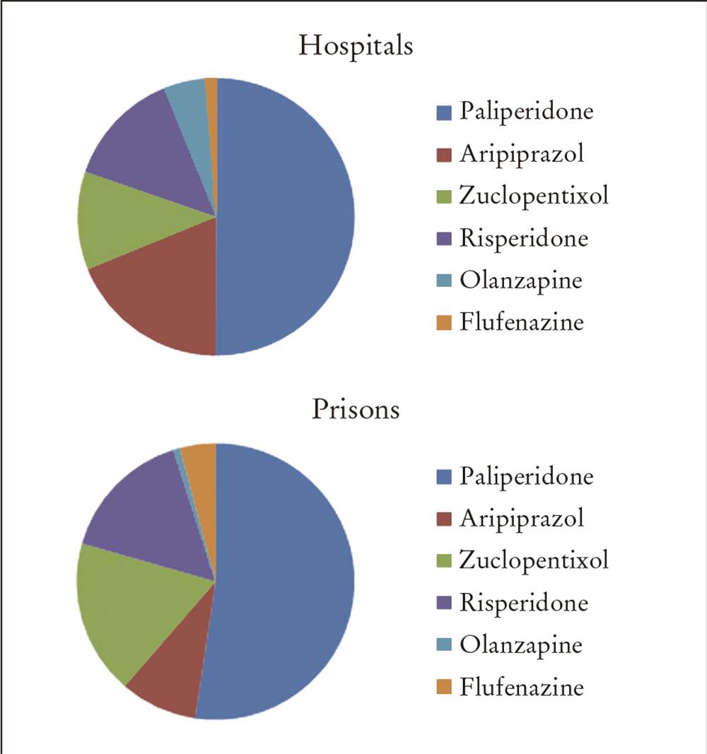 Table 2. Distribution of LAI prescriptions in two hospitals and in prisons