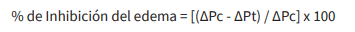 La actividad antiinflamatoria se calculó como porcentaje de reducción del edema en los ratones tratados respecto al grupo control negativo. La magnitud del edema se cuantificó por la diferencia de peso. El porcentaje de inhibición se calculó según la siguiente fórmula: