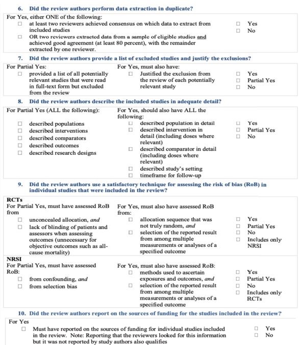 No es posible analizar ensayos clínicos ya que no se permite exponer a radiaciones grupos humanos y genera un problema ético. Explica también que, al analizar los estudios incluidos con AMSTAR 2 la calidad era críticamente baja en su mayoría porque se incluyen muchos estudios observacionales que son de menor evidencia.