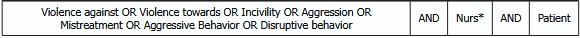 Estudios cuyo título incorporara el término “paciente contra” o “paciente hacia” y “enfermera(o)”.